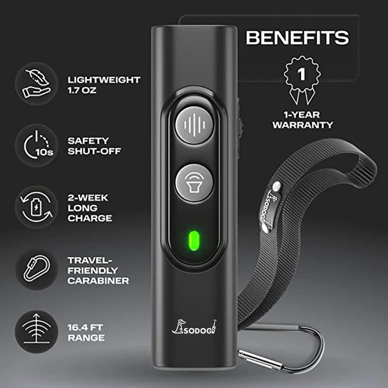 This ultrasonic dog training device helps reduce excessive barking and unwanted behaviors by using safe, high-frequency sound waves that gently capture your dog’s attention — without pain, shock or stress.